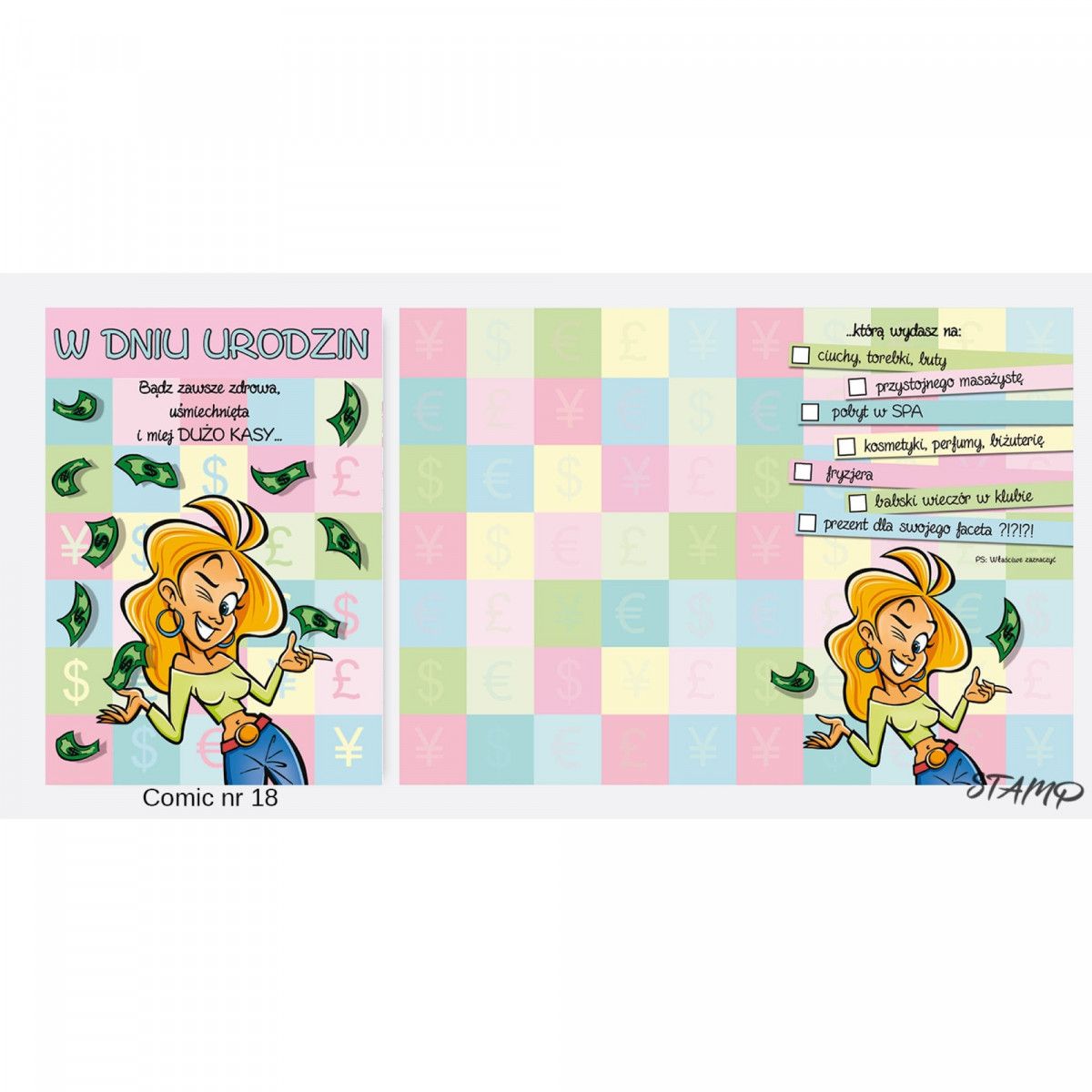 Dostępne: 5 Sztuk Lub zamów telefoniczne: 690 216 578Karnet B6 Comic + Koperta Urodzinowy dla dziewczyny