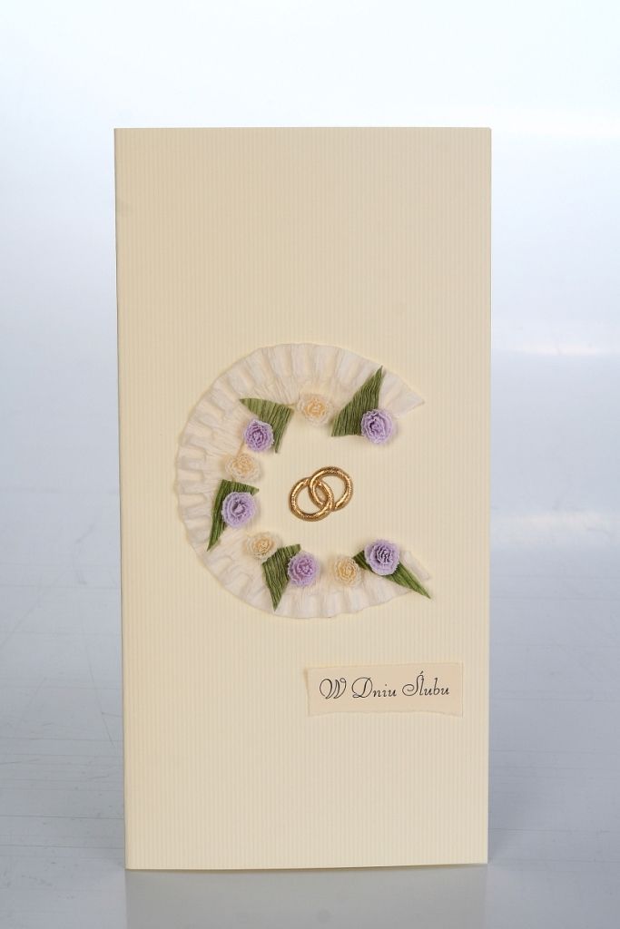 Kartka okolicznościowa z kopertą. Produkt ręcznie zdobiony. W środku kartka z życzeniami. Okoliczność: ślub.