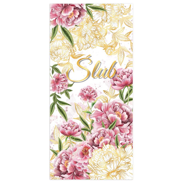 Kartka składana KARNET DL Slub ZŁOTE PIWONIE DL Henry