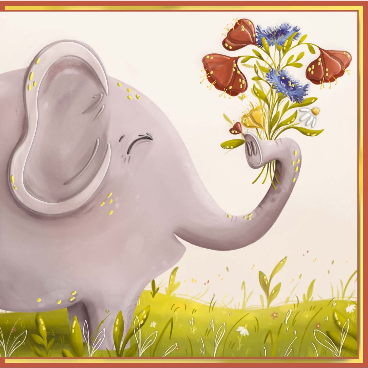 Kartka składana KARNET KW SŁON Z BUKIETEM kw Henry (5907465668354)