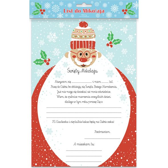 Kartka składana LIST DO MIKOŁAJA MIKOŁAJ Z BRODA A4 Henry (5905701485680)