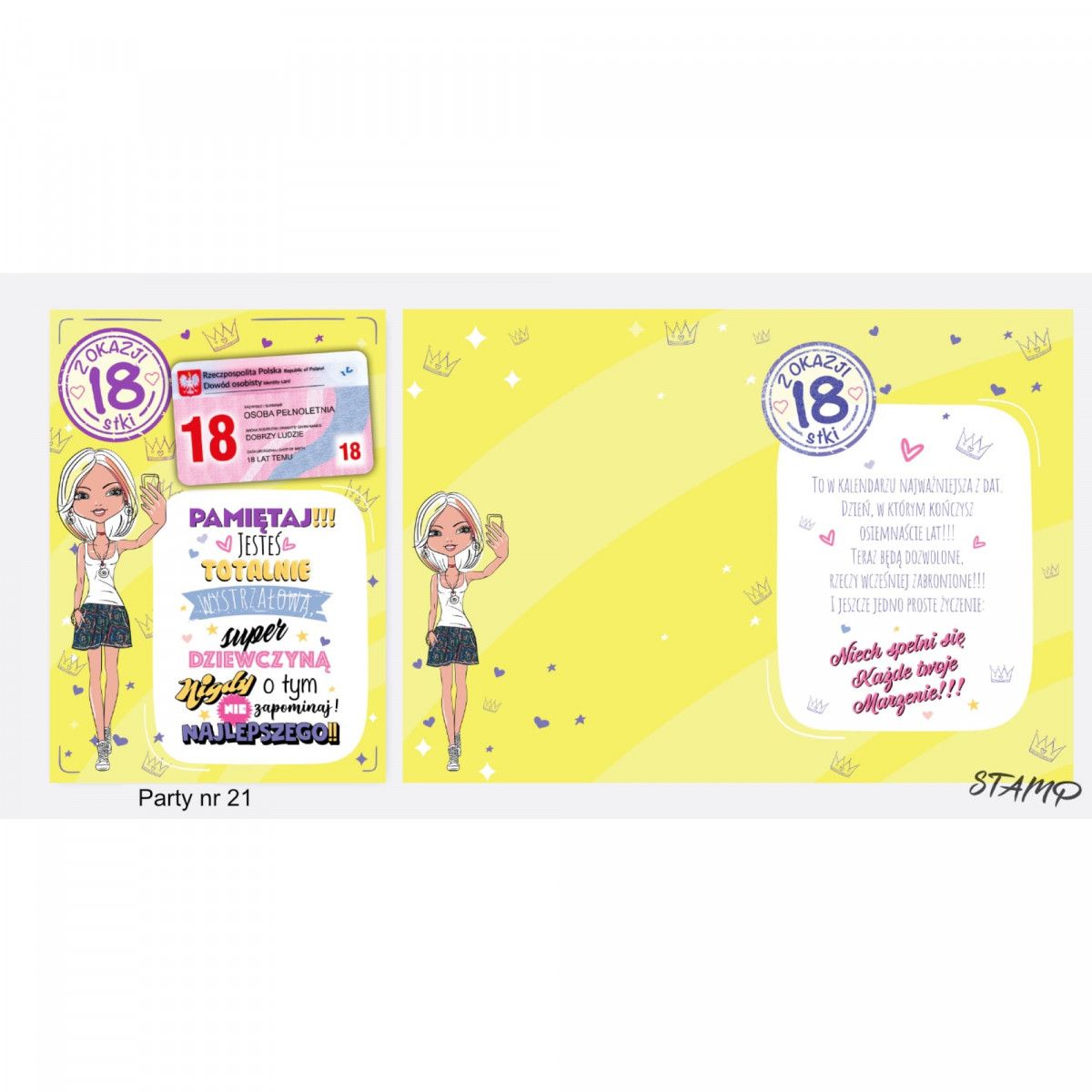 Kartka składana PARTY Urodzinowy dla dziewczyny 18 lat B6 Ev-corp (STKP-021)