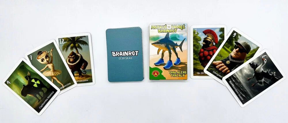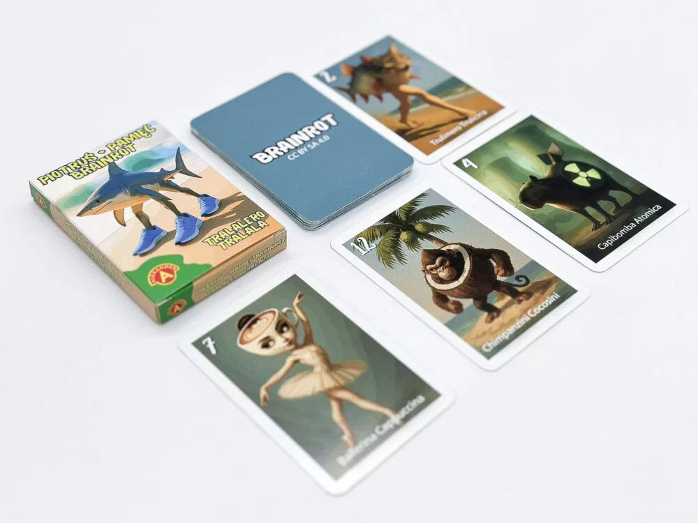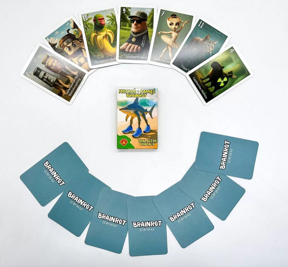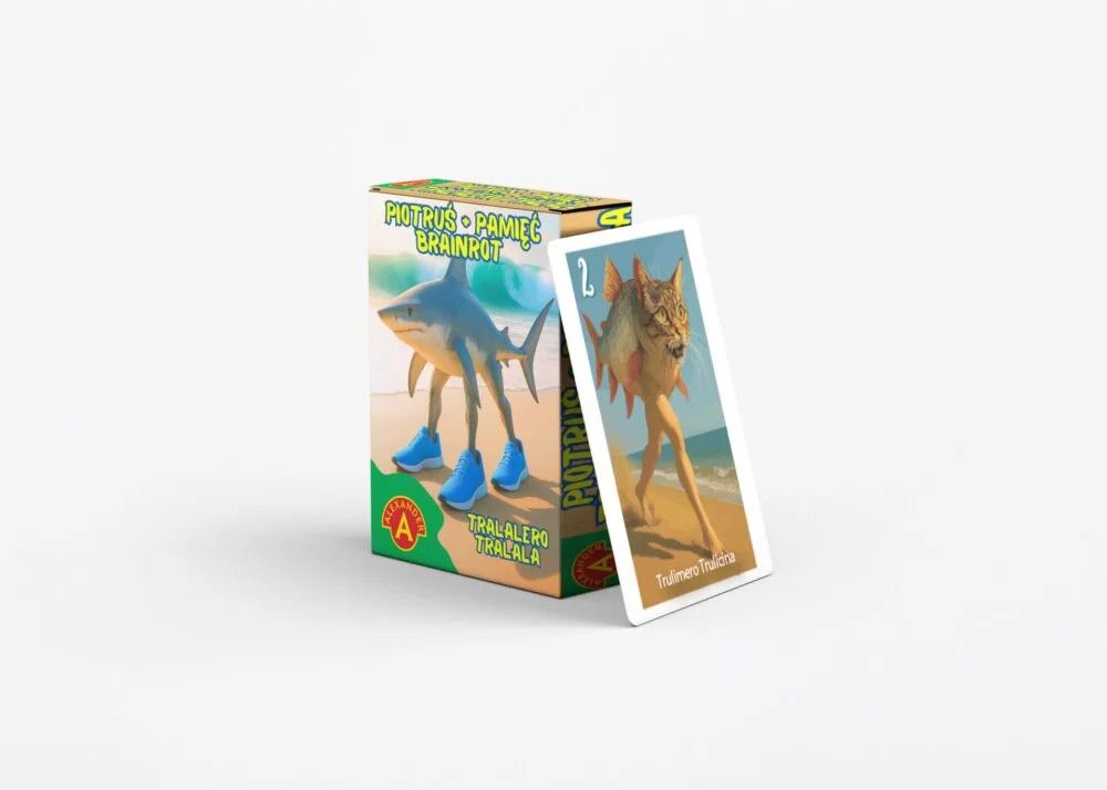W tej talii Piotrusiem jest Tralalero Tralala – rekin na trzech nogach w butach, który potrafi śpiewać, tańczyć i… zniknąć w eksplozji! Jeśli zostaniesz z nim na koniec – gra skończona, a Ty musisz zatańczyć jego taniec porażki.
