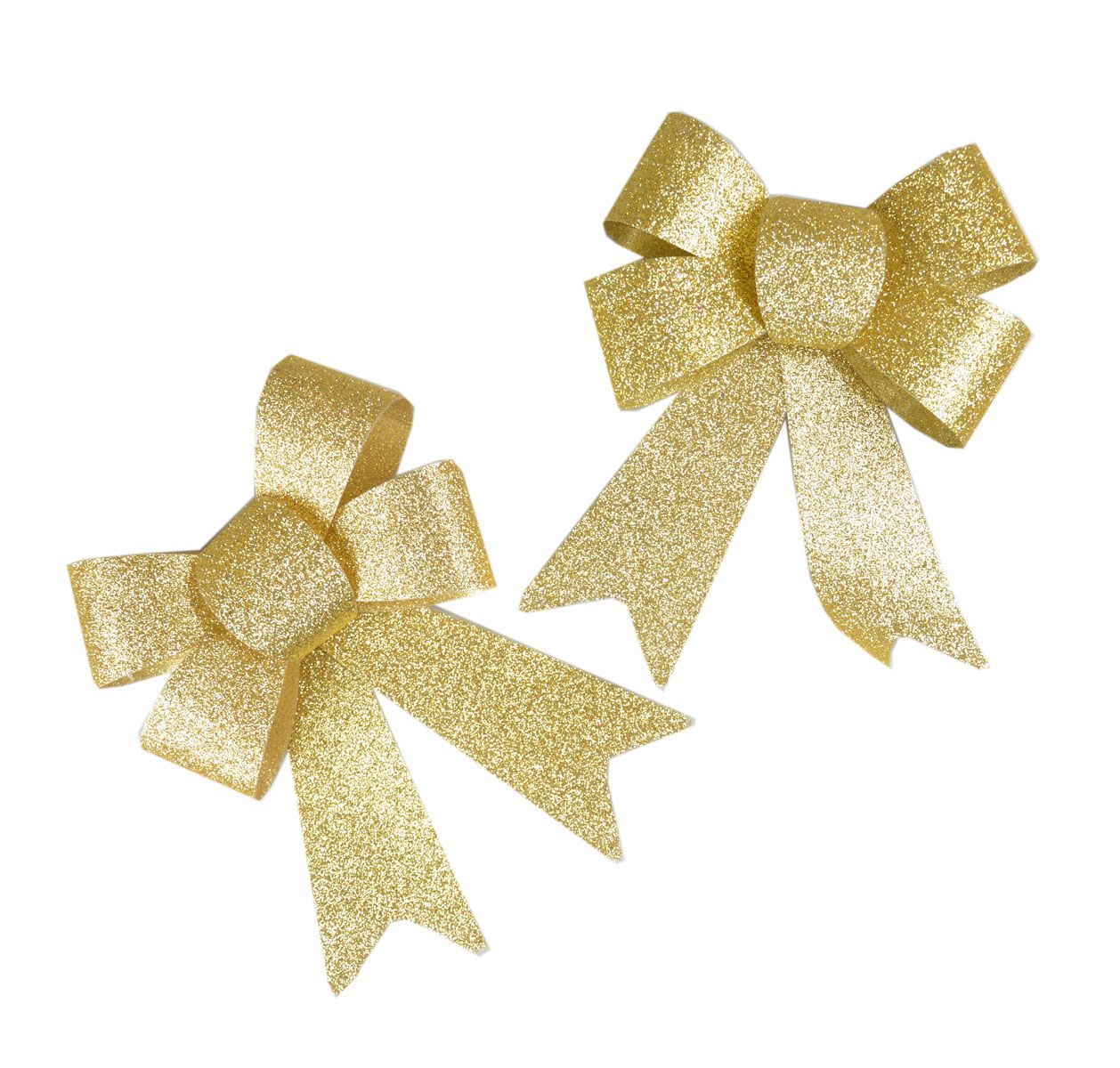 Dostępne: 5 Sztuk Lub zamów telefoniczne: 690 216 578Zestaw dwóch kokard dekoracyjnych w kolorze złotym. Produkt wykończony brokatowym zdobieniem - pięknie mieni się w świetle. Idealnie sprawdzi się w kompozycjach dekoracyjnych, świątecznych jak i do dekoracji prezentów. Wymiary jednej kokardy to 13,5x17,5 cm.