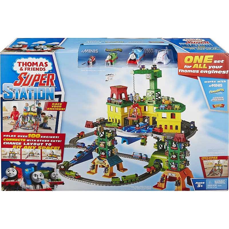 Super Mega Stacja to ogromny zestaw, który łączy zabawę wszystkimi typami kolejek Tomek i Przyjaciele!