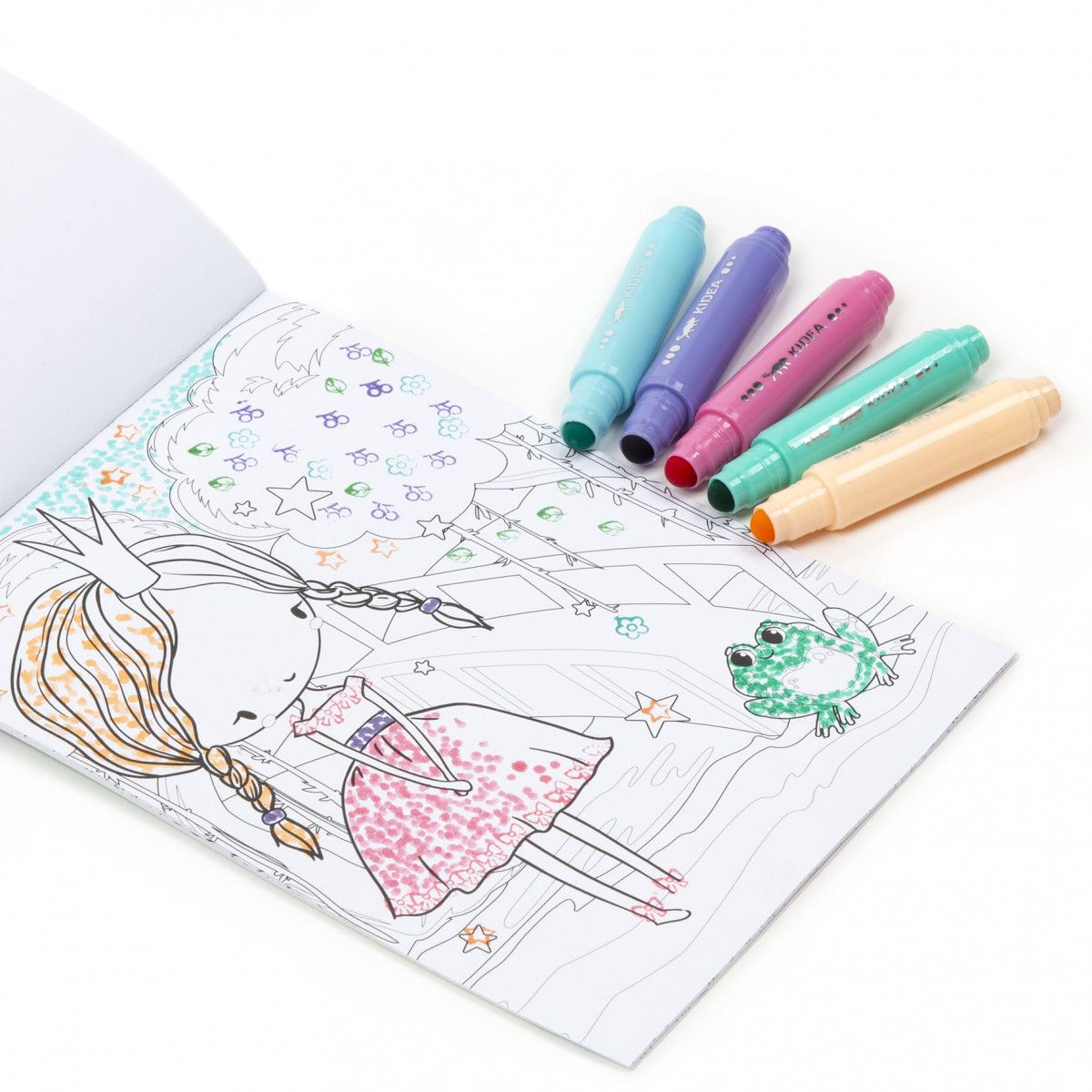 10 arkuszy kolorowanki + 5 flamastrów ze stempelkami