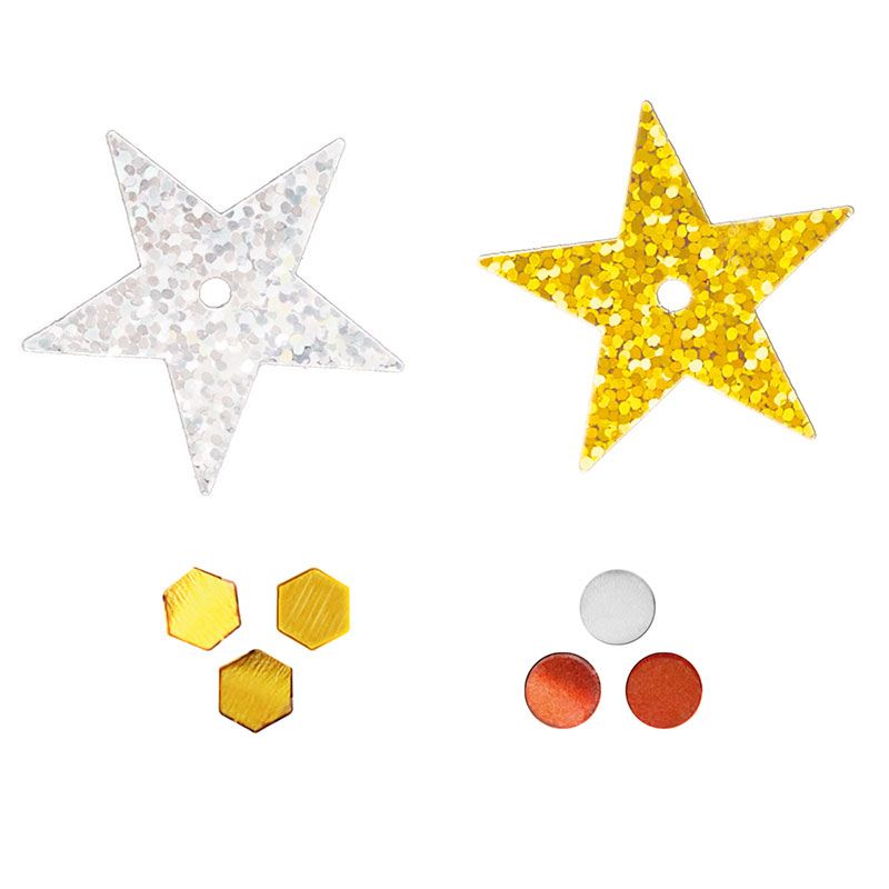 Konfetti, mix 3 wzorów: gwiazdki 3g + okrągłe 2 kolory po 11g.