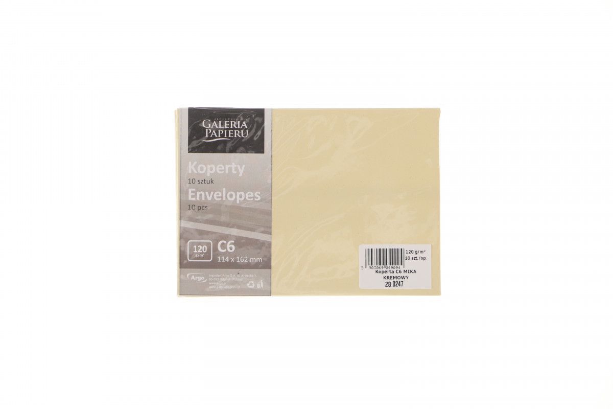 Koperta Millenium, format: C6 (114 x 162mm), gramatura: 120g/m2, ilość: 10 sztuk w opakowaniu, kolor : kremowy, z paskiem samoprzylepnym,