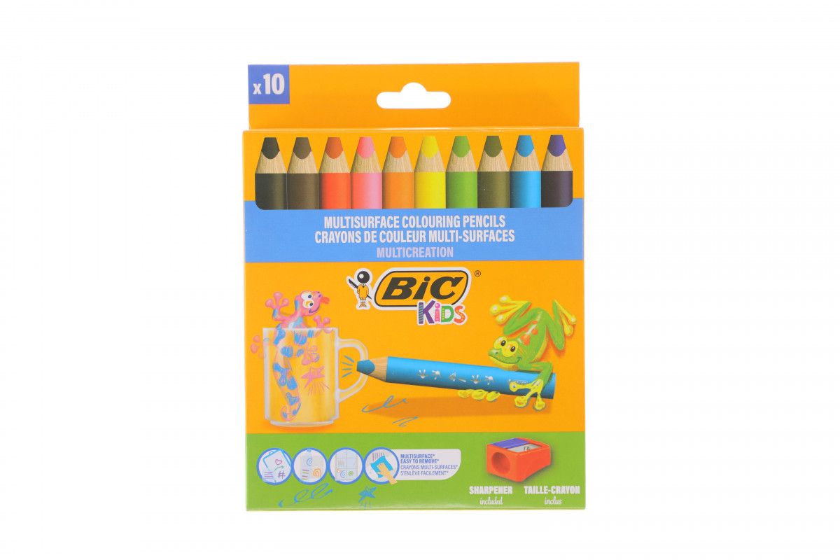 Kredki ołówkowe MULTISURFACE 10szt + temperówka 3086123728370 10 kol. Bic (515276)