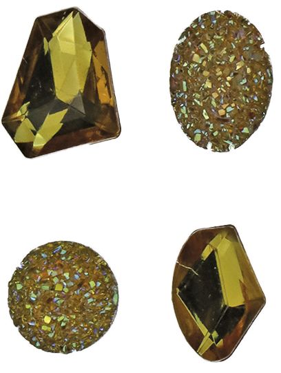 Dostępne: 533 Sztuk Lub zamów telefoniczne: 690 216 578Kryształki samoprzylepne, wzór: kamyki, kolor: złote, mix rozmiarów, 16 sztuk.