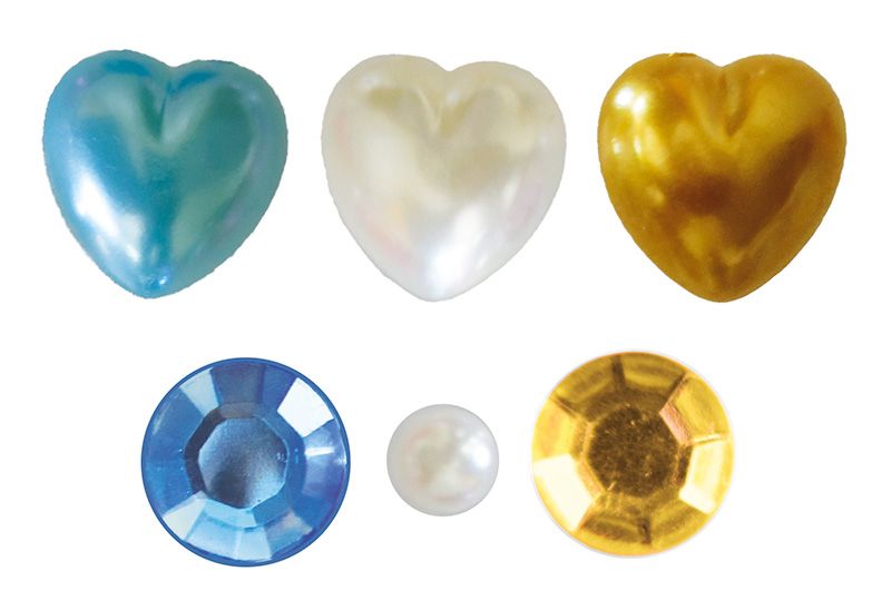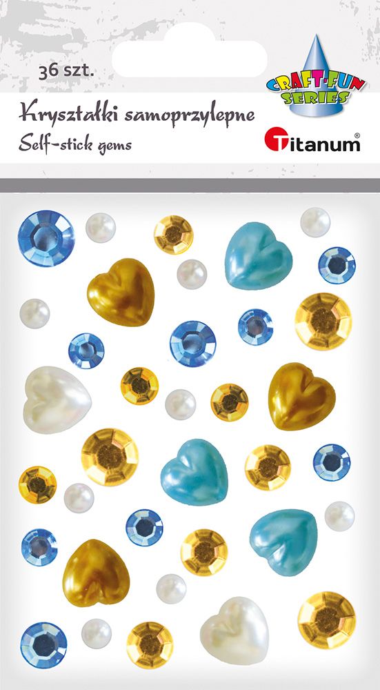 Dostępne: 91 Sztuk Lub zamów telefoniczne: 690 216 578Kryształki samoprzylepne, mix wzorów, tonacja złoto-niebieska, wzór: okrągłe - średnica 12/8mm, perełki serca - 14x14mm i perełki okrągłe średnica 6mm. 36 sztuk.