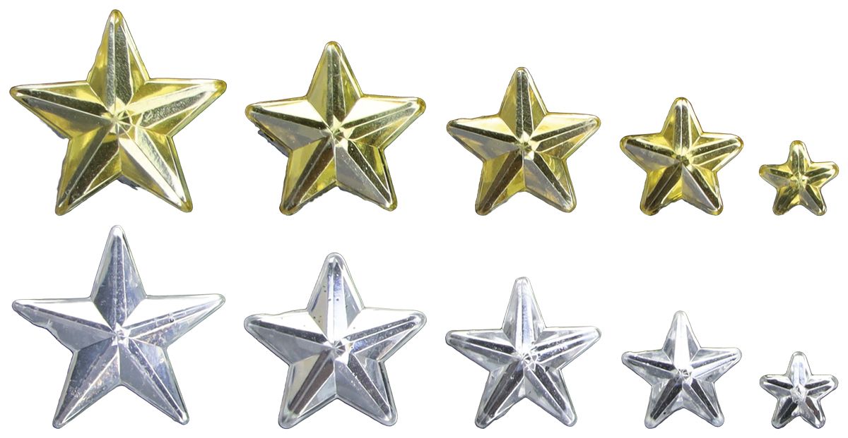 Dostępne: 228 Sztuk Lub zamów telefoniczne: 690 216 578Kryształki samoprzylepne gwiazdki, średnica 5x5/8x8/10x10/13x13 mm, kolory: złote, srebrne. 64 sztuki.