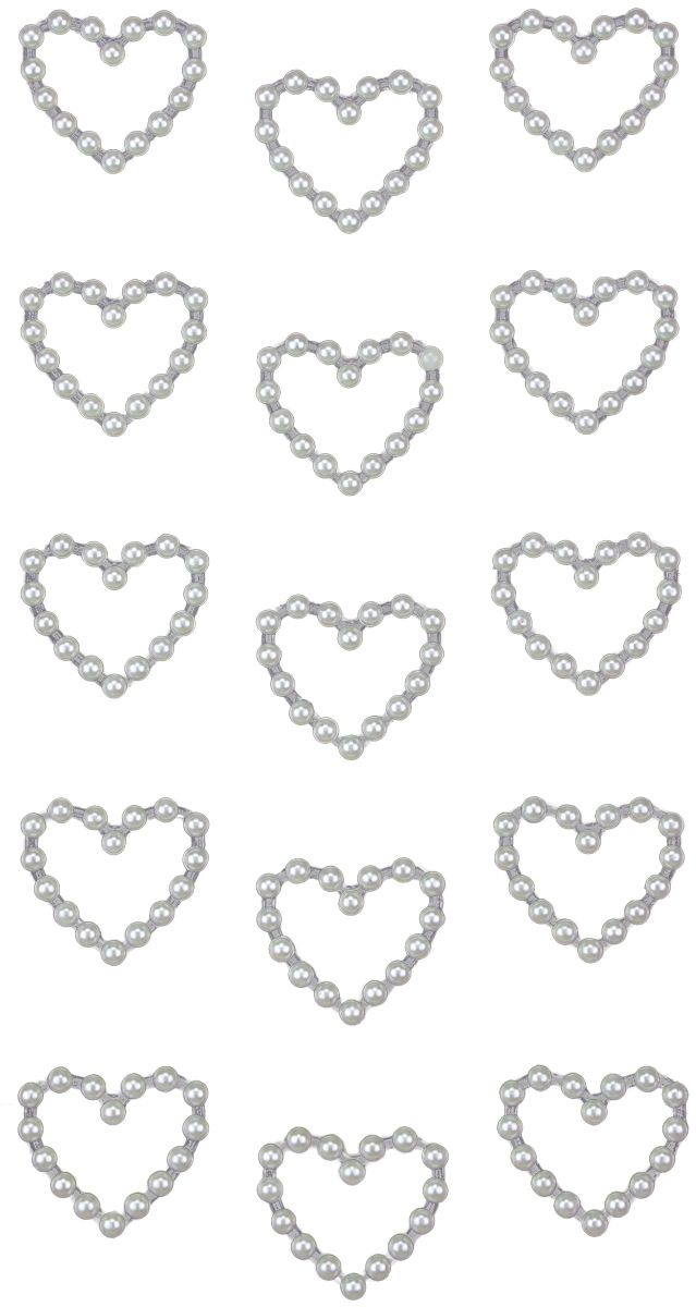 Dostępne: 480 Sztuk Lub zamów telefoniczne: 690 216 578Perełki samoprzylepne, wzór: serca, wymiary: 20 x 18 mm, kolor: białe. 15 sztuk.