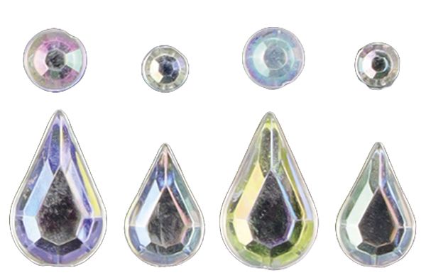 Dostępne: 97 Sztuk Lub zamów telefoniczne: 690 216 578Kryształki samoprzylepne, wzór: krople 5x8/6x10 mm, okrągłe średnica 3/4 mm. 84 sztuki.