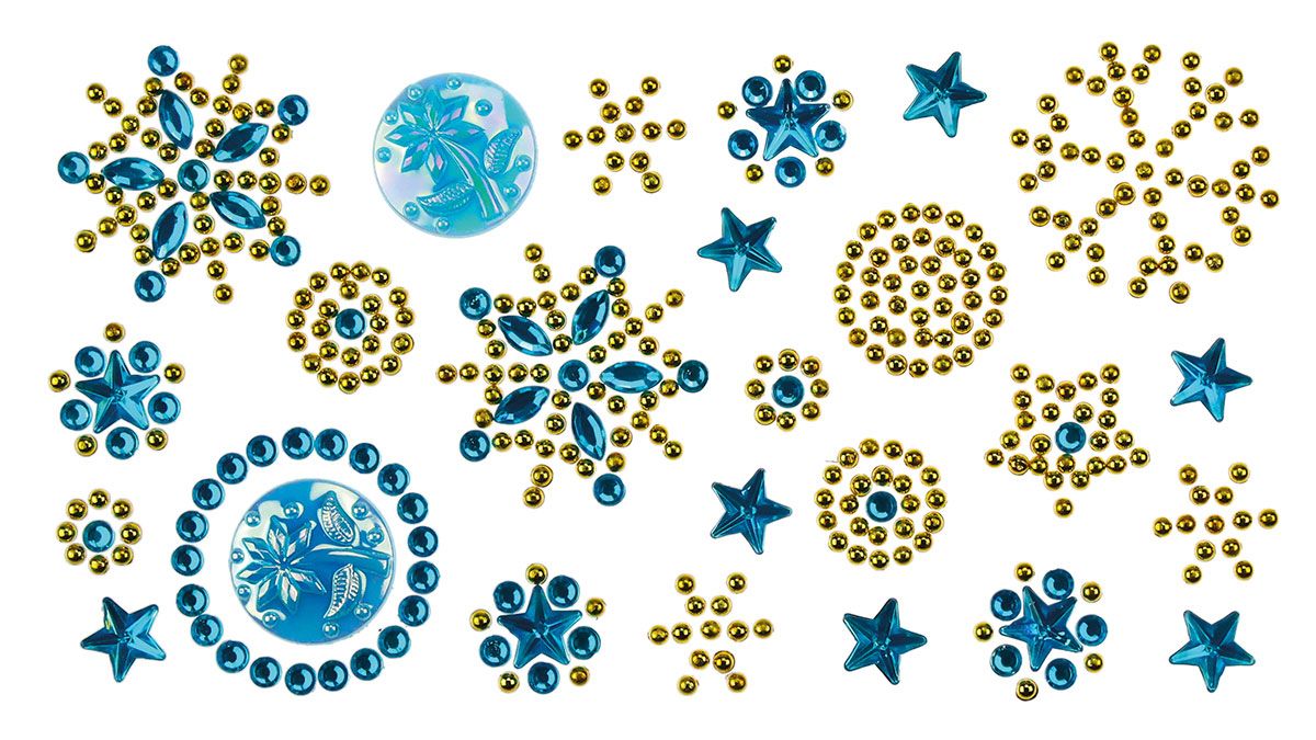 Dostępne: 347 Sztuk Lub zamów telefoniczne: 690 216 578Kryształki samoprzylepne, wzory: płatki śniegu, gwiazdki, okręgi, kolory: turkusowo-złote. 25 sztuk.