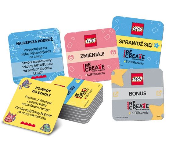 Dostępne: 8 Sztuk Lub zamów telefoniczne: 690 216 578LEGO® Recreate. Karty Wyzwań. SUPERszkoła.