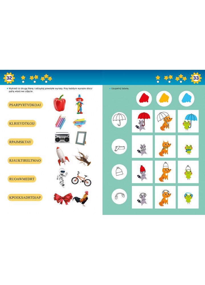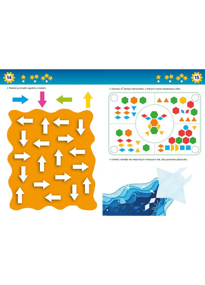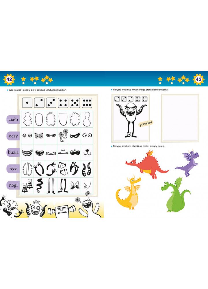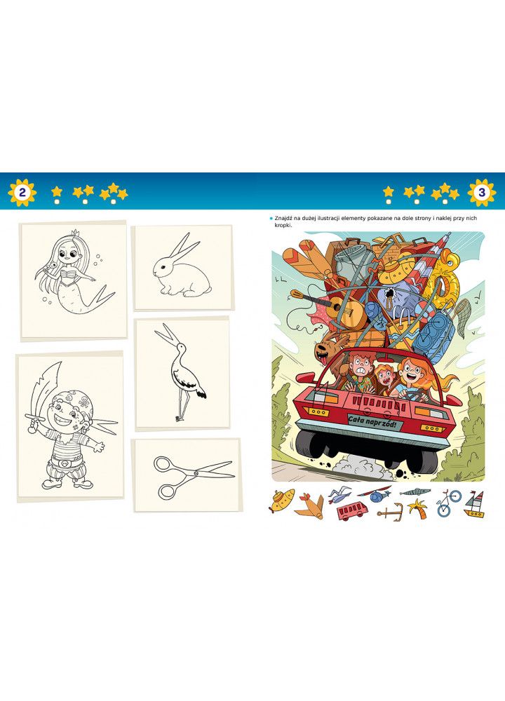 Atrakcyjne graficznie, ciekawe, kreatywne aktywności i zadania z naklejkami rozwijają różnorodne umiejętności,