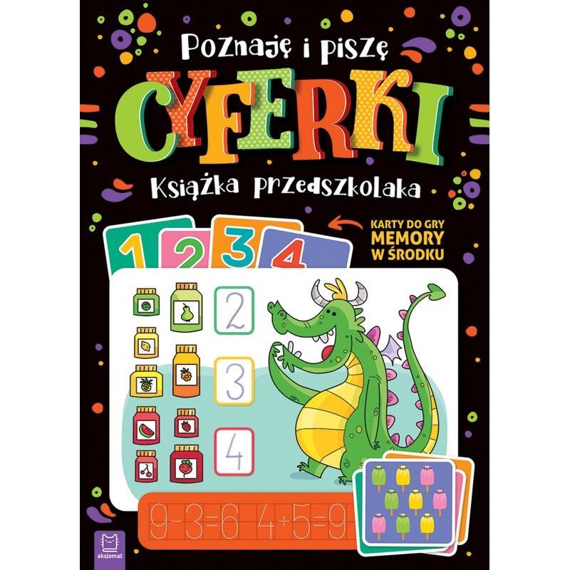 Książeczka edukacyjna Poznaję i piszę cyferki. Książka przedszkolaka. Karty do gry memory w środku Aksjomat