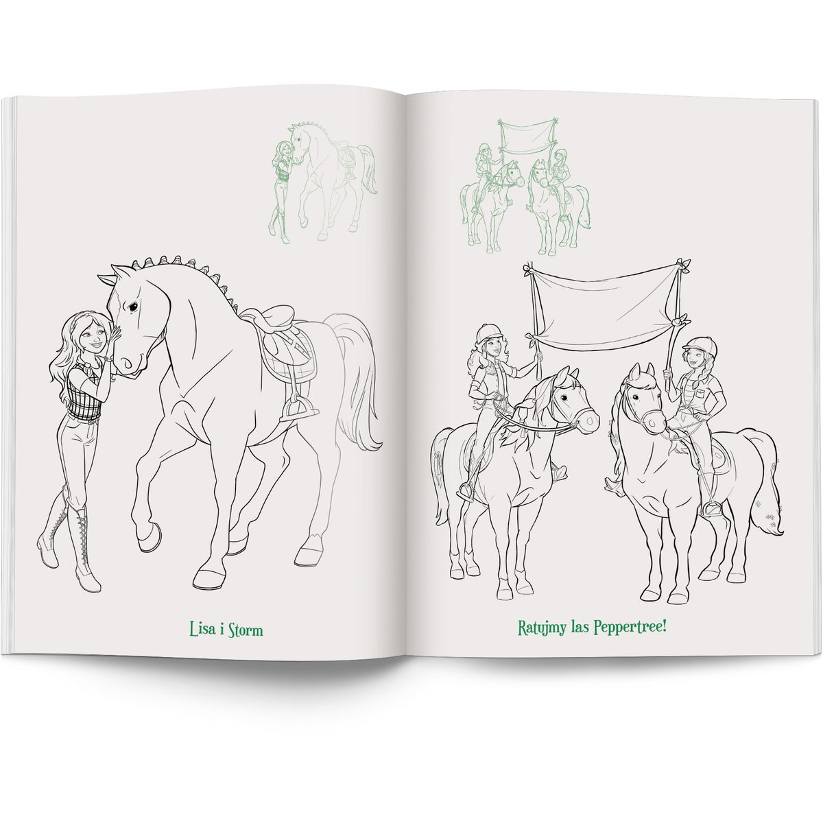 Nie zwlekaj i rozpocznij fantastyczną przygodę dzięki nowej książce z serii Horse Club! Mnóstwo naklejek i piękne ilustracje zapewnią najmłodszym miłośniczkom koni moc zabawy w stadninie Lakeside. Wklejając na stronach naklejki z odpowiednimi obrazkami, a następnie kolorując rysunki według wzoru, dziecko ćwiczy spostrzegawczość oraz doskonali zdolności manualne.