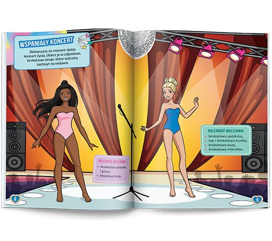 Stonowane, pastelowe kreacje, a może wystrzałowe, błyszczące stylizacje? Barbie wie, że moda ma różne oblicza. Odkryj, jakie stroje wybrała ona oraz jej przyjaciółki na okazje takie jak wiosenny spacer, spotkanie ze znajomymi czy uroczysta premiera filmowa. Zabawę urozmaicą ci naklejki, w tym także brokatowe.
