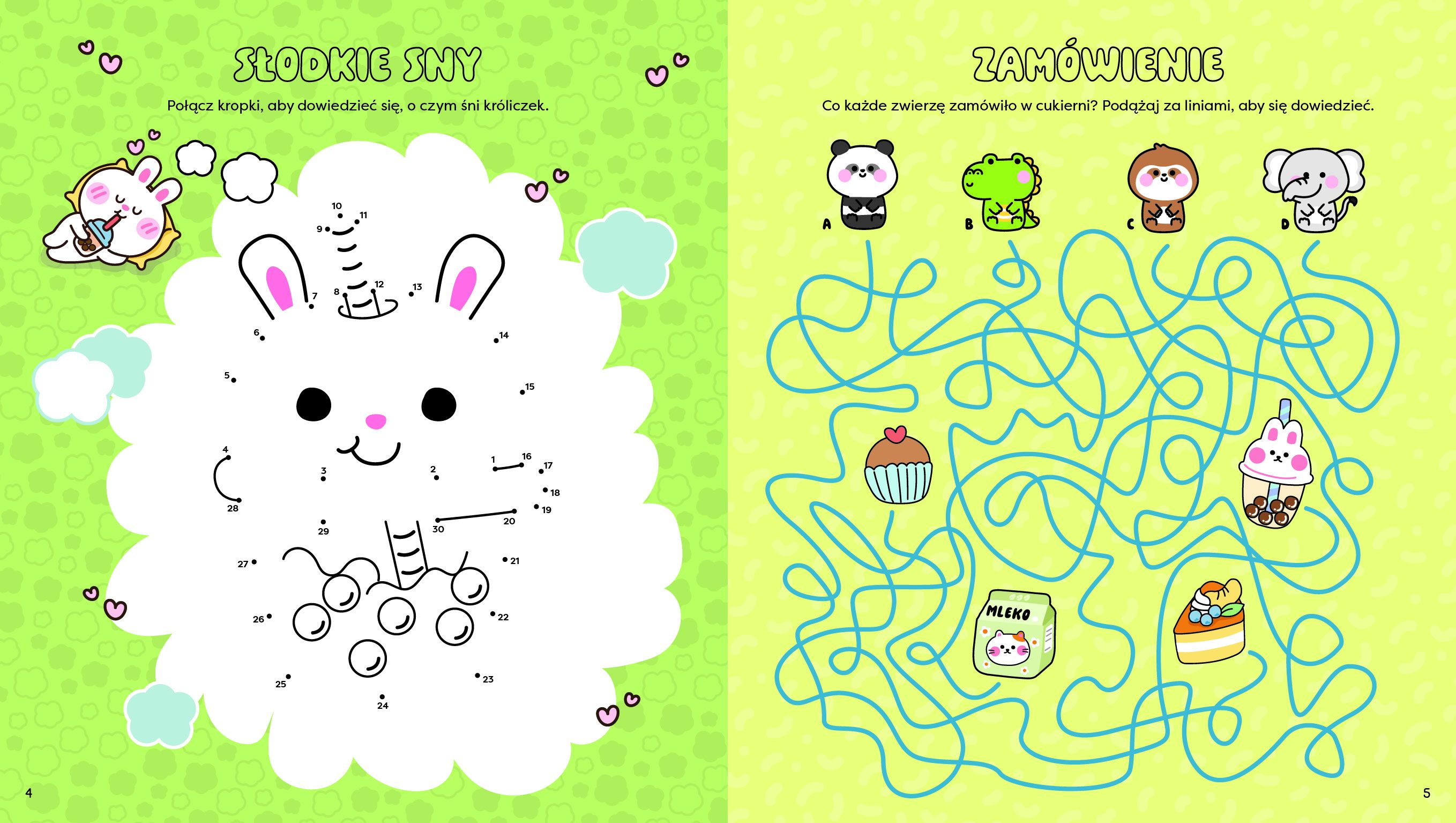 Książka aktywnościowa stworzona z myślą o dzieciach, które kochają wszystko, co wesołe i przyjemne. Pełna słodkich zadań – od krętych labiryntów, przez zwariowane zagadki, kreatywne wyzwania, po rysunki pełne smakołyków. Z tak wieloma rzeczami do odnalezienia, rozwiązania i naszkicowania będzie idealnym przepisem na godziny radosnej zabawy.