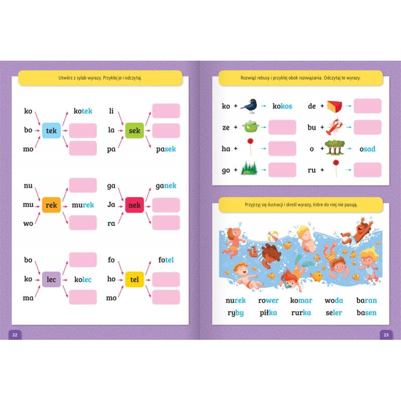 „Czytam sylabami i bawię się naklejkami. Ciekawe zadania do nauki czytania” to książka, która powstała, aby uprzyjemnić dzieciom naukę czytania. Płynne czytanie to kluczowa umiejętność niezbędna w szkole i życiu codziennym. Pracując z tą książką, dziecko rozpoczyna od prostych zadań i stopniowo przechodzi do trudniejszych. Wykonując edukacyjne łamigłówki z naklejkami, dzieci nie nudzą się, a w łatwy sposób zwiększają czytelniczą sprawność. Nauka przez zabawę i świadomość własnych umiejętności jest dla dziecka źródłem satysfakcji oraz zachętą do podejmowania kolejnych wyzwań. Skutkuje to wzrostem wiedzy i kompetencji małych czytelników.