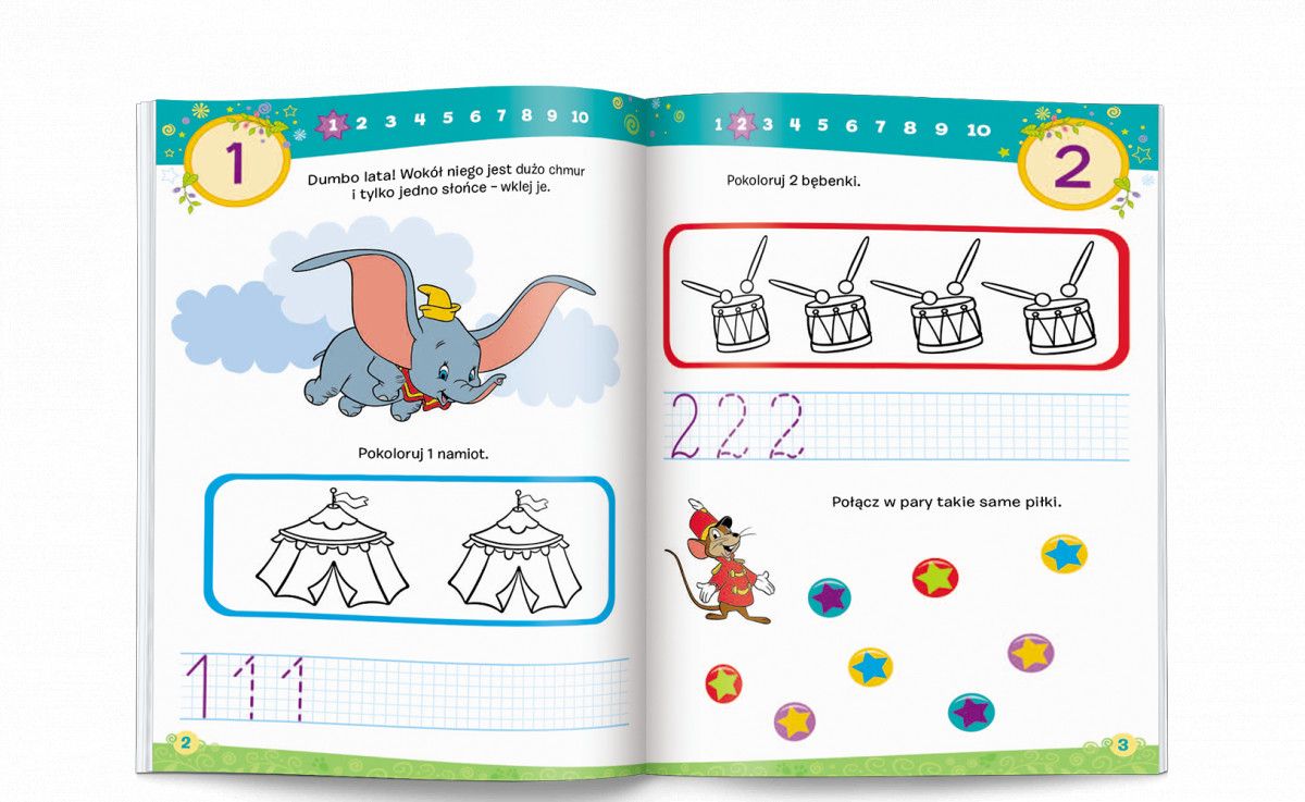 Dostępne: 10 Sztuk Lub zamów telefoniczne: 690 216 578Disney Uczy. Zeszyt ćwiczeń. Liczby Książka została wydana w ramach programu Disney Uczy z myślą o czterolatkach. Rozwiązując zadania, dziecko ćwiczy pisanie cyfr i wykonuje proste działania na liczbach. Dzięki temu doskonali sprawność manualną i opanowuje technikę trzymania ołówka. W ćwiczeniach towarzyszą maluchowi ulubieni bohaterowie, a dodatkową atrakcją są naklejki. Piszemy płynnie!