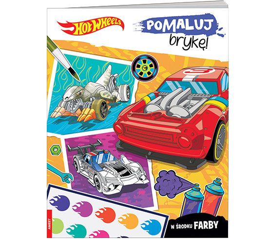 Moc kreatywnej zabawy dla małych fanów motoryzacji. Książka zawiera gotową do użycia paletę barw. Wystarczy zamoczyć pędzelek w wodzie, wybrać odpowiednią farbkę i już można malować! Obrazki ulubionych samochodów Hot Wheels można kolorować także kredkami. Ciekawy kolor lakieru, oryginalne wzory na karoserii i chromowanych elementach? Odjazdowe bryki potrzebują pomocy małego lakiernika, aby zabłysnąć na torze wyścigowym!