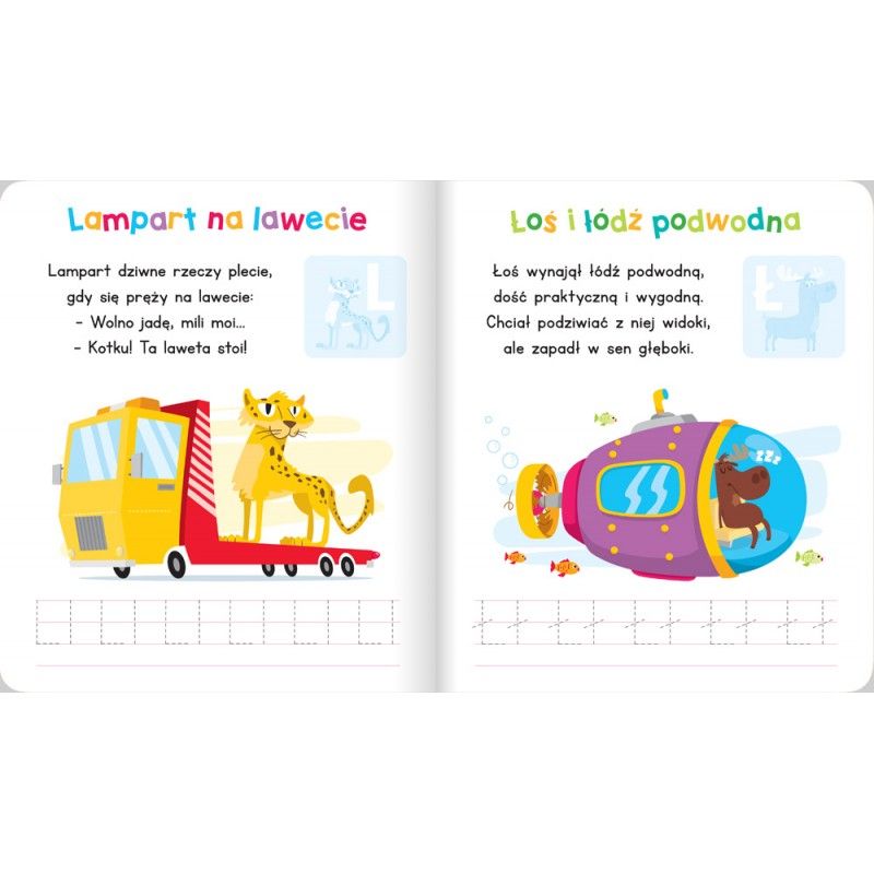 A jak arbuz, b jak balon - najłatwiej zapamiętać litery przez bliskie skojarzenie z tym, co znane. I taki sposób nauki proponujemy w tej książce: dziecko wodzi paluszkiem po kształtach liter, przykleja naklejki, a zabawne wierszyki o zwierzętach pomogą mu zapamiętać poznawane literki.