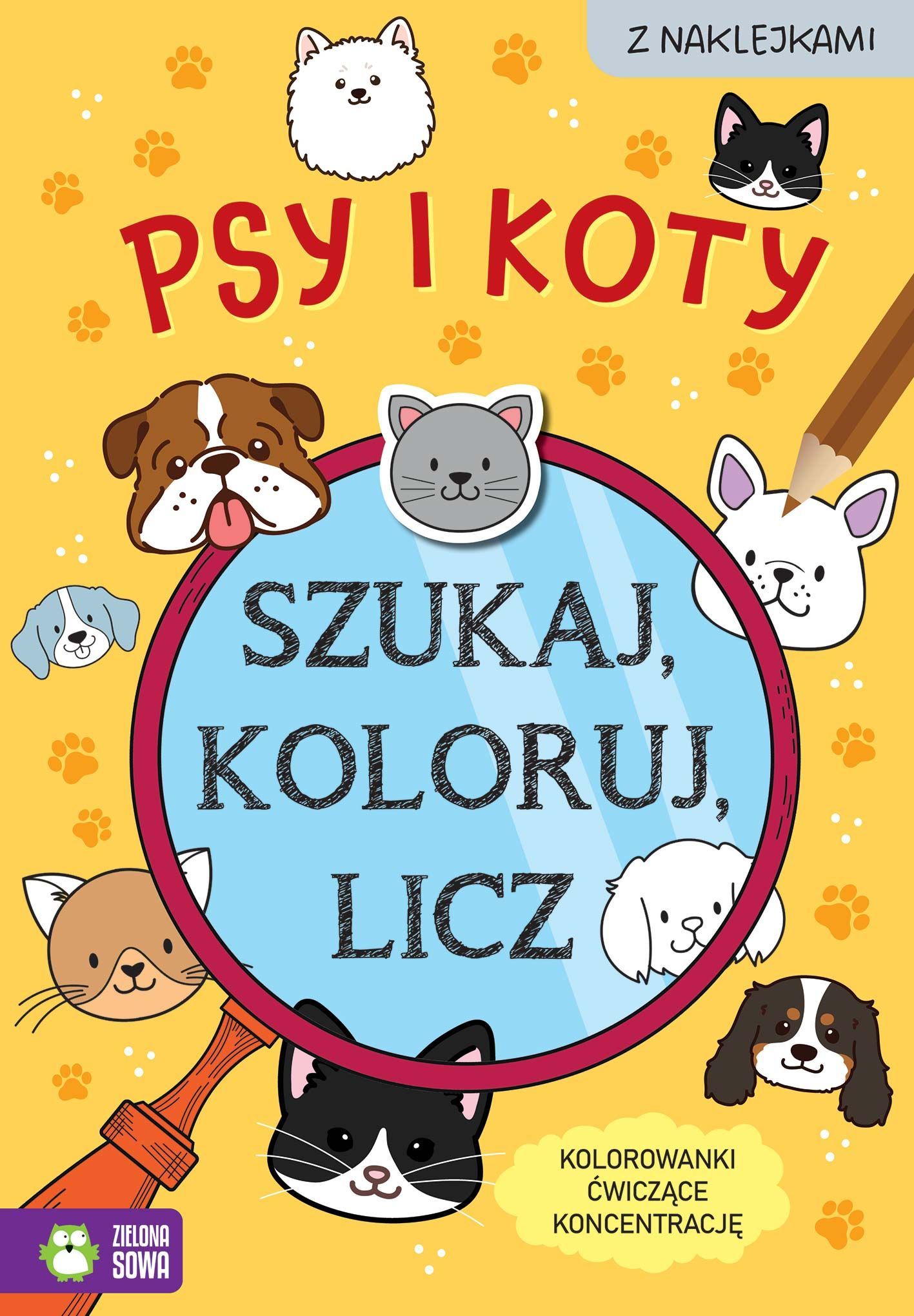 Książka dla dzieci Szukaj, koloruj i licz. Psy i koty Aksjomat