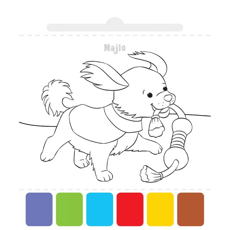 Dostępne: 5 Sztuk Lub zamów telefoniczne: 690 216 578Malowanka z pędzelkiem i farbkami to propozycja dla małych artystów. Na każdej stronie znajduje się rysunek do pokolorowania oraz paleta z farbami. Dołączony pędzelek wystarczy zamoczyć w wodzie, wybrać kolor farbki i można zacząć kolorowanie. Perforacja ułatwia wyrywanie rysunków z książki. W malowance znajdują się następujące ilustracje do kolorowania: york Fanta, szczeniak Czaruś, kicia Figa, buldog francuski Reksio, kotka Marietka, szynszyla Szymuś, kot perski Sonia, papużki Iza i Leo, dachowiec Bury, szczur Fredzio, żółw Klemens, terier Majlo, kotka Karinka, chihuahua Zojka, królik Feliks, ślimak Eryk, chomik Henio, fretki Riko i Ali, kicia Liza i pudel Morelka. Ciekawa tematyka i odpowiednie dla dzieci rysunki sympatycznych zwierząt oraz dołączony pędzelek i paleta z farbami zachęcą dzieci do pracy z książeczką. Zapraszamy do świata kolorów – użyj wody, zbudź kolory!