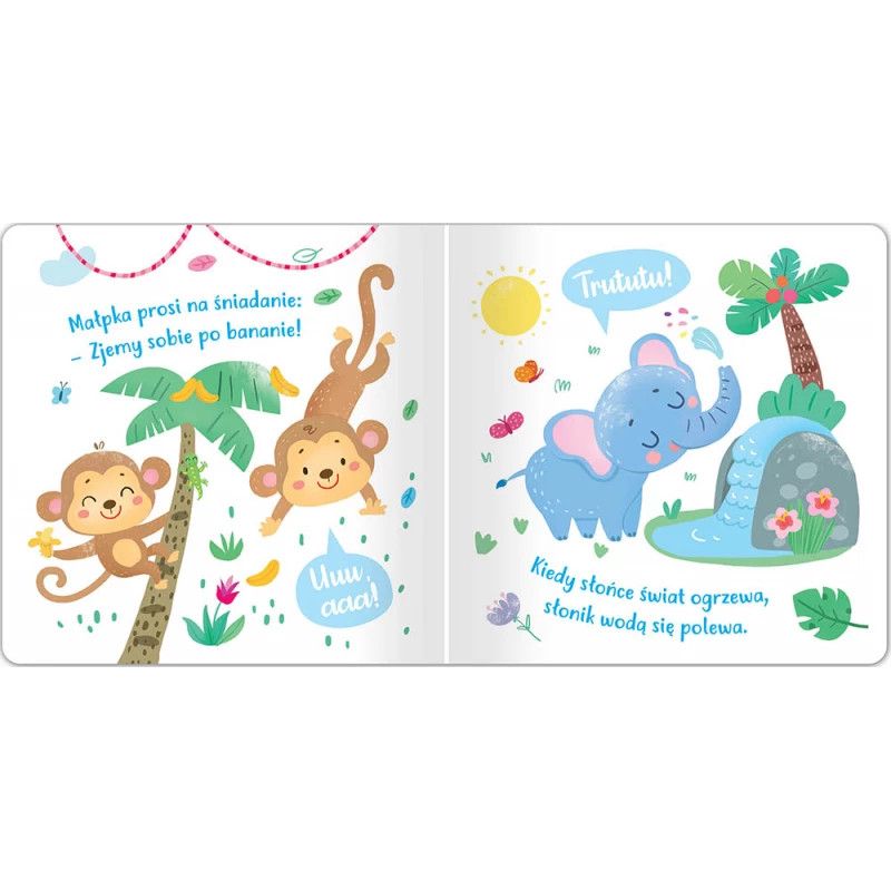 Dostępne: 6 Sztuk Lub zamów telefoniczne: 690 216 578Książeczka z dźwiękami dla małych miłośników zwierząt, a w niej bogate, pastelowe ilustracje odpowiednie dla małych dzieci i krótkie, wpadające w ucho wierszyki o lubianych przez dzieci zwierzakach. Miłą niespodzianką są dołączone dźwięki egzotycznych zwierząt z zoo. Można posłuchać, jakie odgłosy wydają: małpa, słoń, papuga, flaming, lew, żółw, koala, kangur, delfin, wąż, hipopotam i żyrafa. Naciśnij przycisk z obrazkiem, aby włączyć dźwięk. Chcesz wyłączyć? Naciśnij przycisk jeszcze raz. Zabawa z książką rozwija zmysły malucha. Wesołe i łatwe do zapamiętania wierszyki rozwijają pamięć i percepcję dziecka, które wzbogaca również swoją wiedzę o odgłosy wydawane przez zwierzęta egzotyczne. Twarda oprawa i kartonowe karty sprawiają, że książka jest trwała i bezpieczna, a format odpowiedni dla małego dziecka. „Posłuchaj zwierząt!” to książka do czytania, słuchania i oglądania.