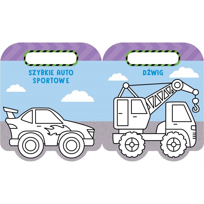 Dla dzieci, które dopiero uczą się kolorować, najbardziej odpowiednie są obrazki z grubym obrysem i małą liczbą szczegółów. Kolorowanie różnorodnych pojazdów oraz przyklejanie naklejek sprawia im wielką frajdę. Wykrojnik z rączką oraz kółkami zachęca małych fanów motoryzacji nie tylko do kolorowania, ale i do zabawy książeczką.