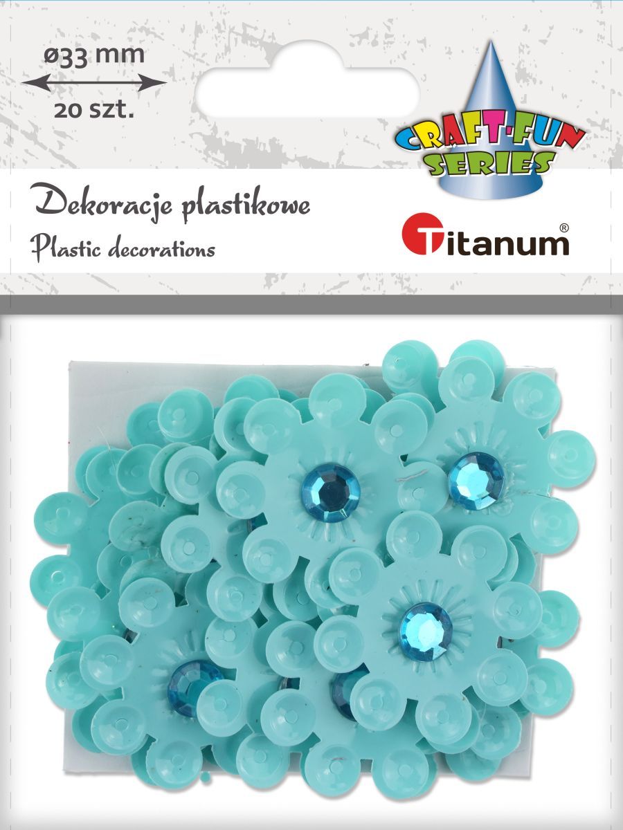 Dostępne: 220 Sztuk Lub zamów telefoniczne: 690 216 578Dekoracje samoprzylepne plastikowe 3D, wzór: kwiaty, średnica 33 mm, błękitne z kryształkiem. 20 sztuk.