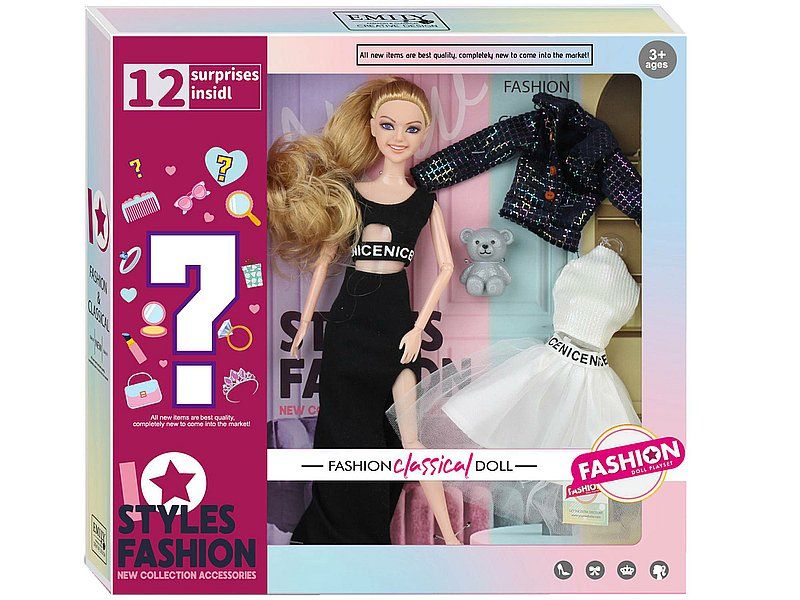 lalka 29cm z zestawem ubrań; 34,5x33,5x6,5cm, W/B