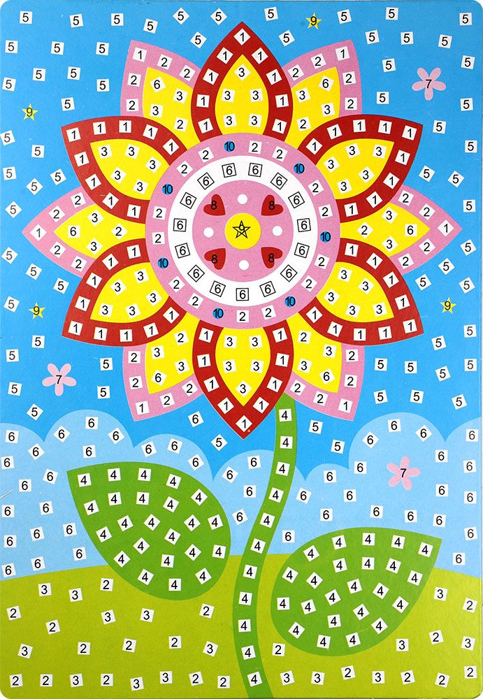 Dostępne: 505 Sztuk Lub zamów telefoniczne: 690 216 578Mozaika piankowa, wzór: KWIATEK, wymiary planszy do wyklejenia: 16,3 x 23,4 cm, stojak na obrazek.