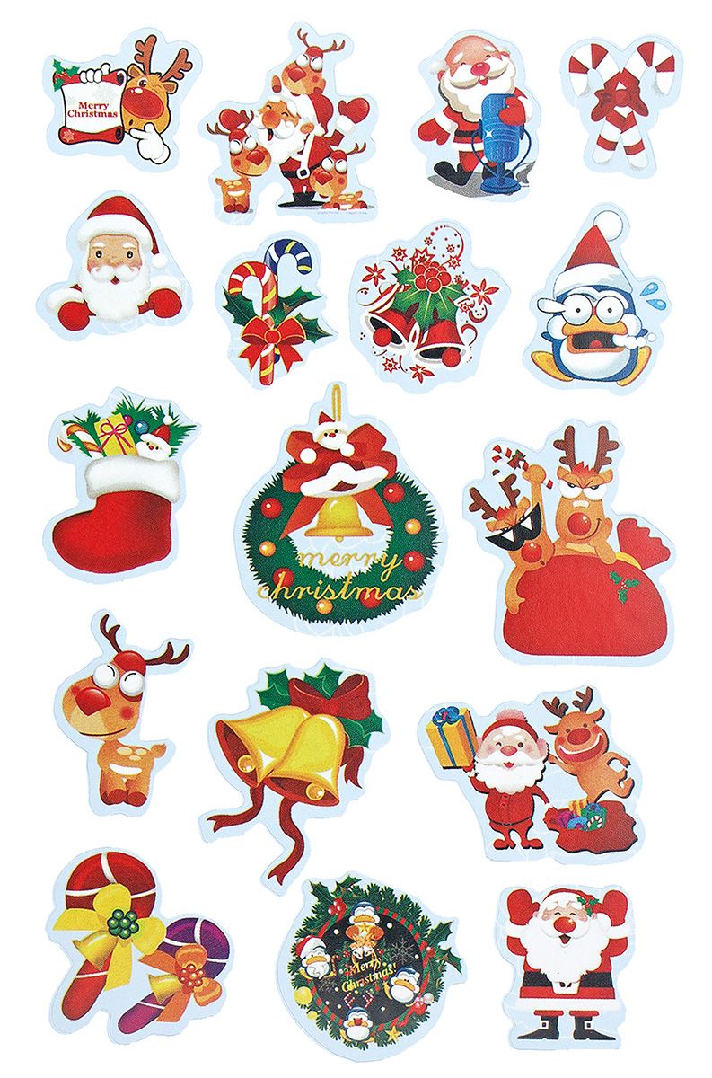 Dostępne: 1550 Sztuk Lub zamów telefoniczne: 690 216 578Naklejki papierowe, 10 plansz, wzory: wianki, stroiki, Mikołaje, renifery. 17 wzorów - 170 sztuk.