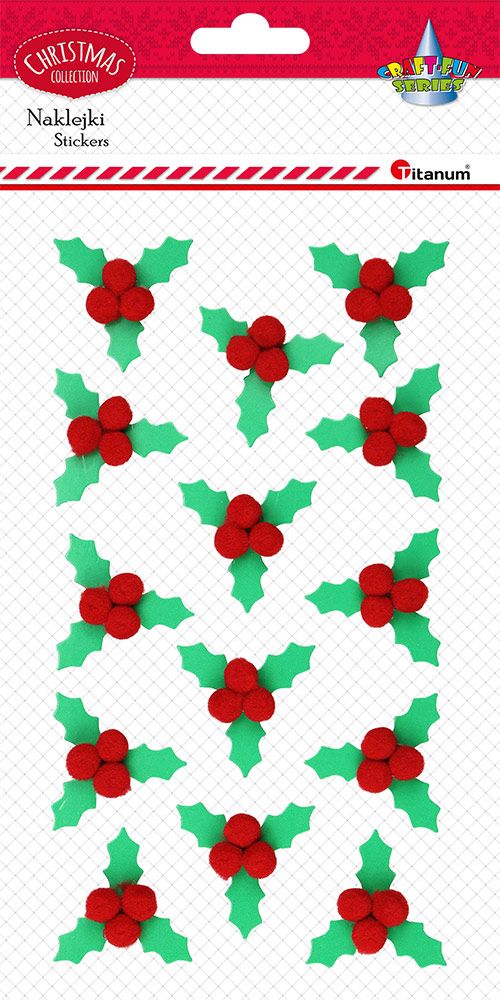 Naklejka (nalepka) Craft-Fun Series 3D liście ostrokrzewu z owocami z pomponów Titanum (25CY0424-17)