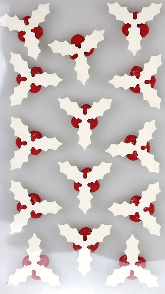 Dostępne: 1676 Sztuk Lub zamów telefoniczne: 690 216 578Naklejki 3D, wzór: liście ostrokrzewu z owocami z pomponów.