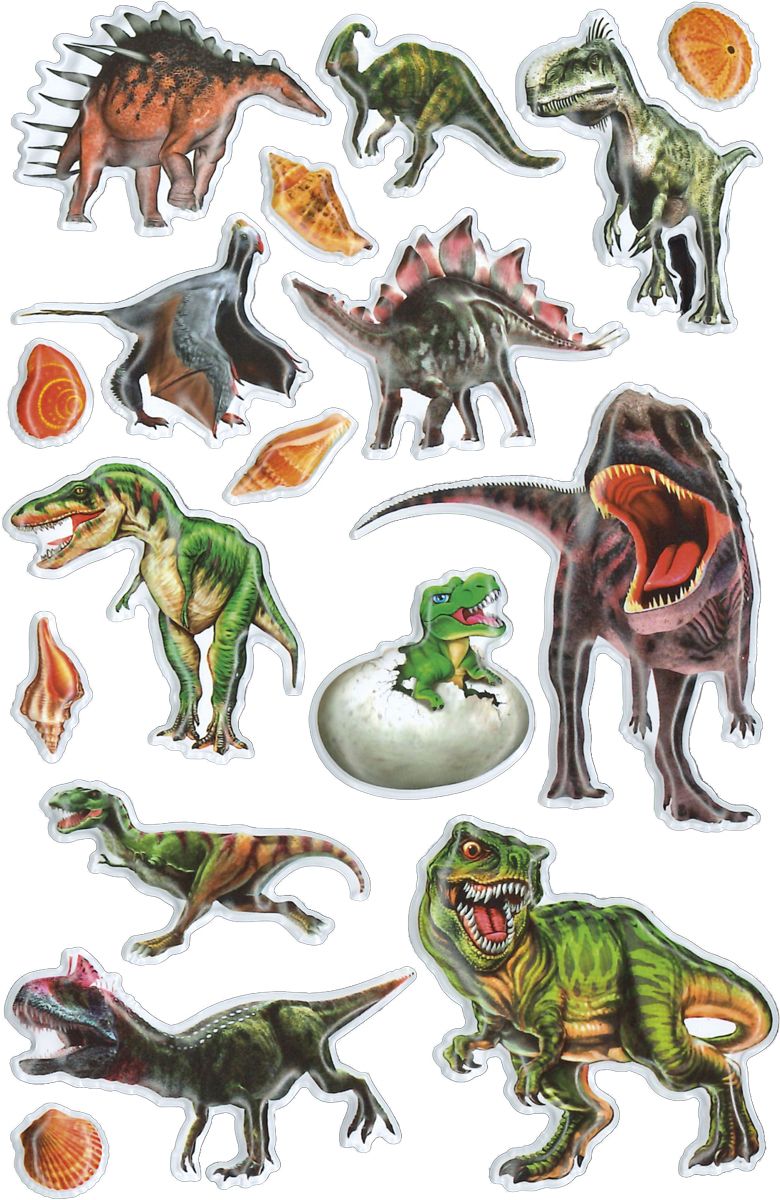 Dostępne: 1805 Sztuk Lub zamów telefoniczne: 690 216 578Naklejki wypukłe miękkie, wzór: dinozaury, mix rozmiarów. 17 sztuk.