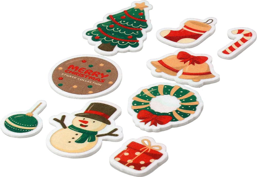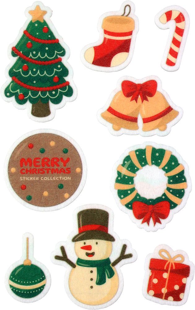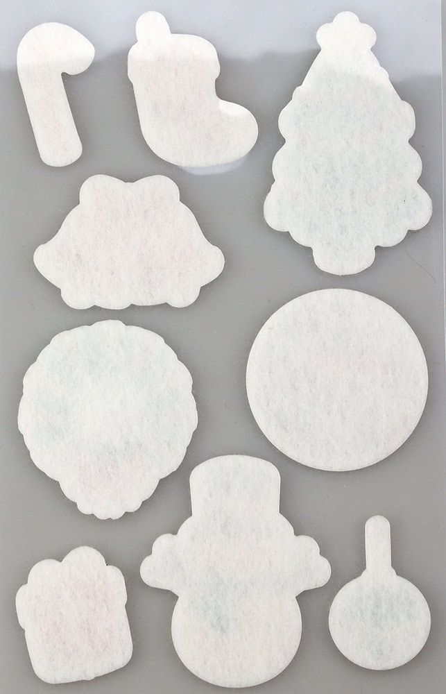 Dostępne: 1413 Sztuk Lub zamów telefoniczne: 690 216 578Naklejki filcowe, wzory: choinka, wianek, bałwanek, prezent, bombki. Mix rozmiarów i kolorów. 9 sztuk.