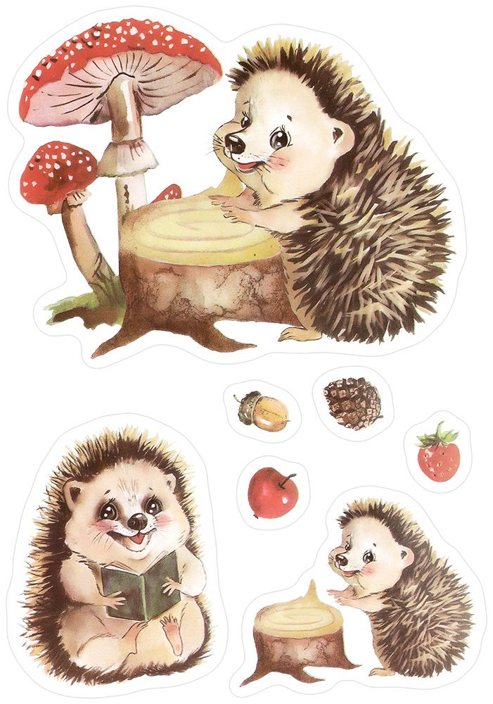 Naklejki foliowe wzór: jeże, mix. 7 sztuk.