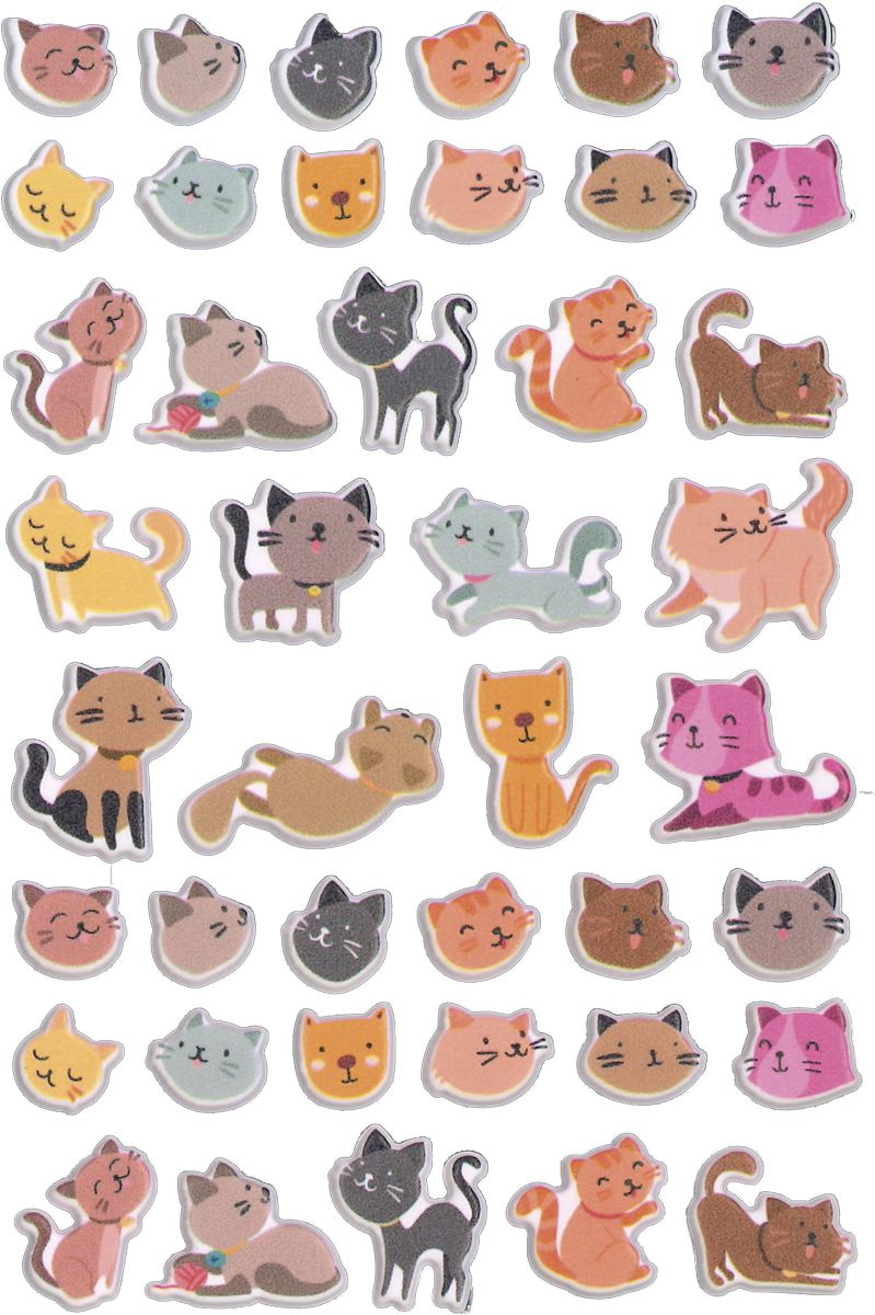 Naklejki wypukłe, wzór: koty. 42 sztuki.