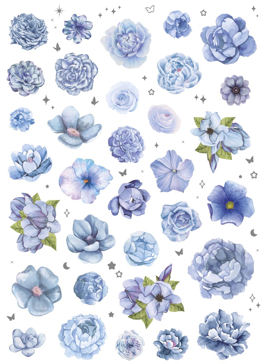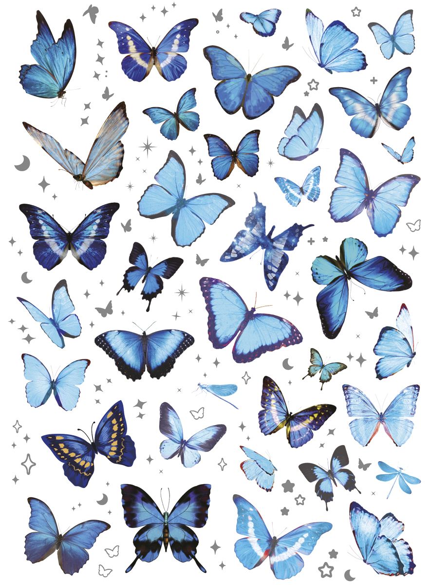 Dostępne: 1886 Sztuk Lub zamów telefoniczne: 690 216 578Naklejki foliowe, 2 plansze, wzory: motyle, kwiaty, tonacja niebieska.