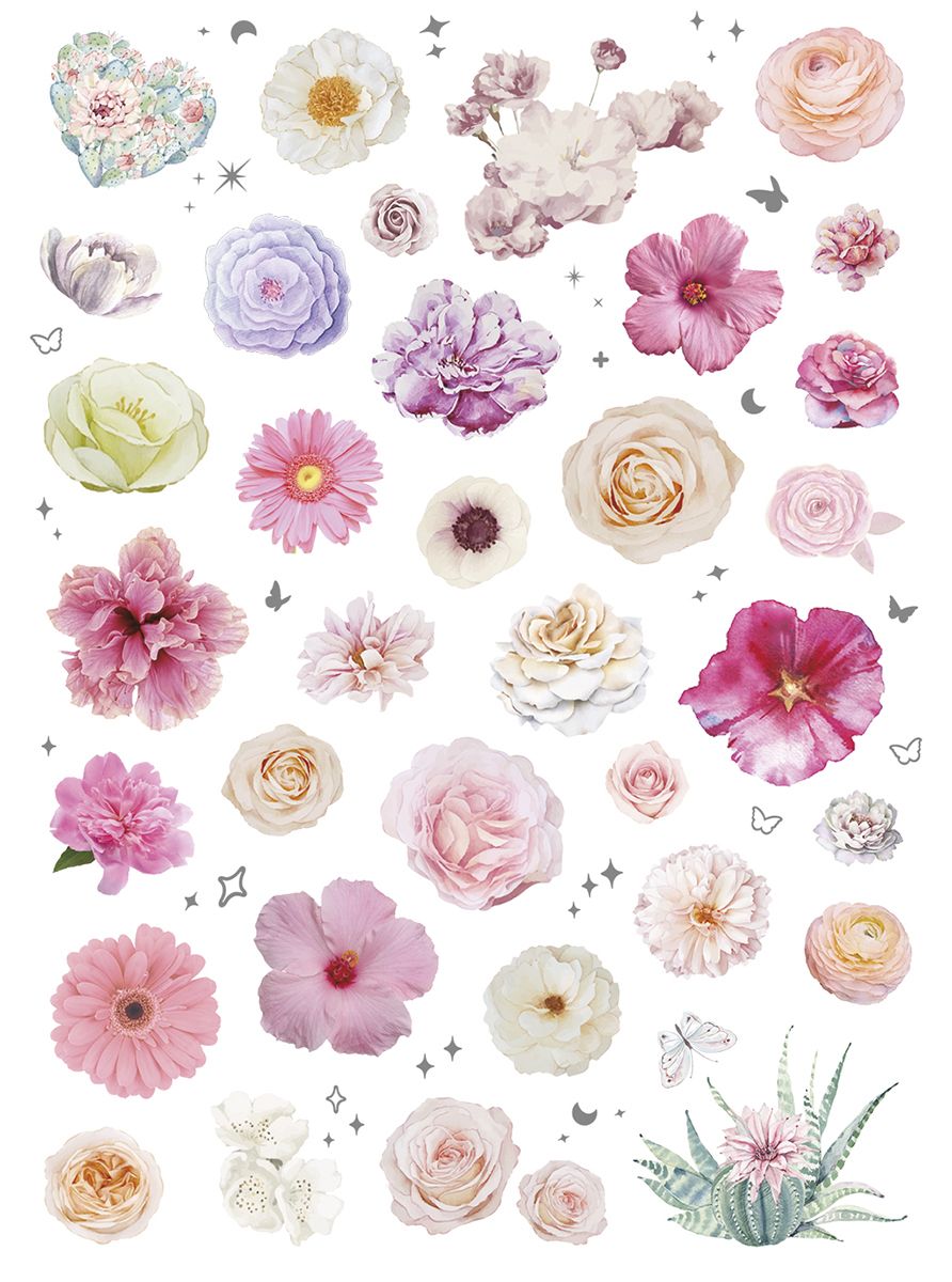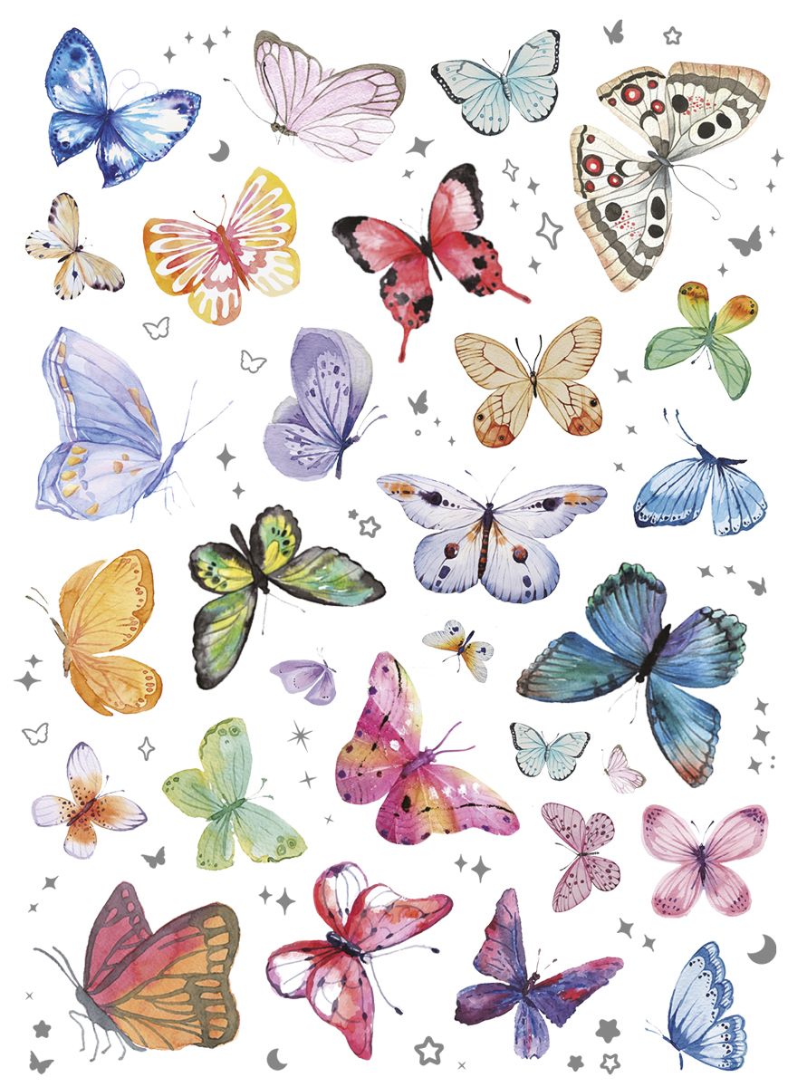 Dostępne: 1832 Sztuk Lub zamów telefoniczne: 690 216 578Naklejki foliowe, 2 plansze, wzory: motyle, kwiaty, tonacja pastelowa.