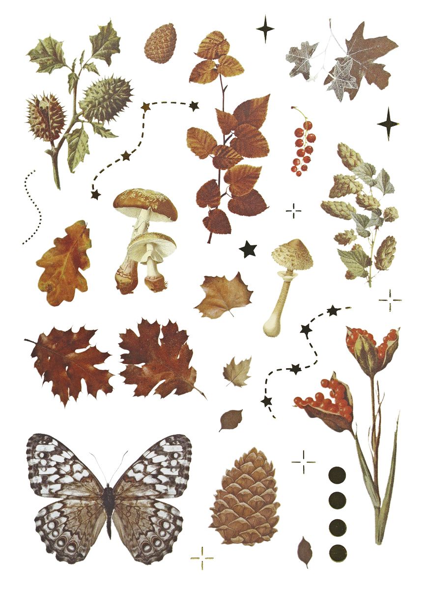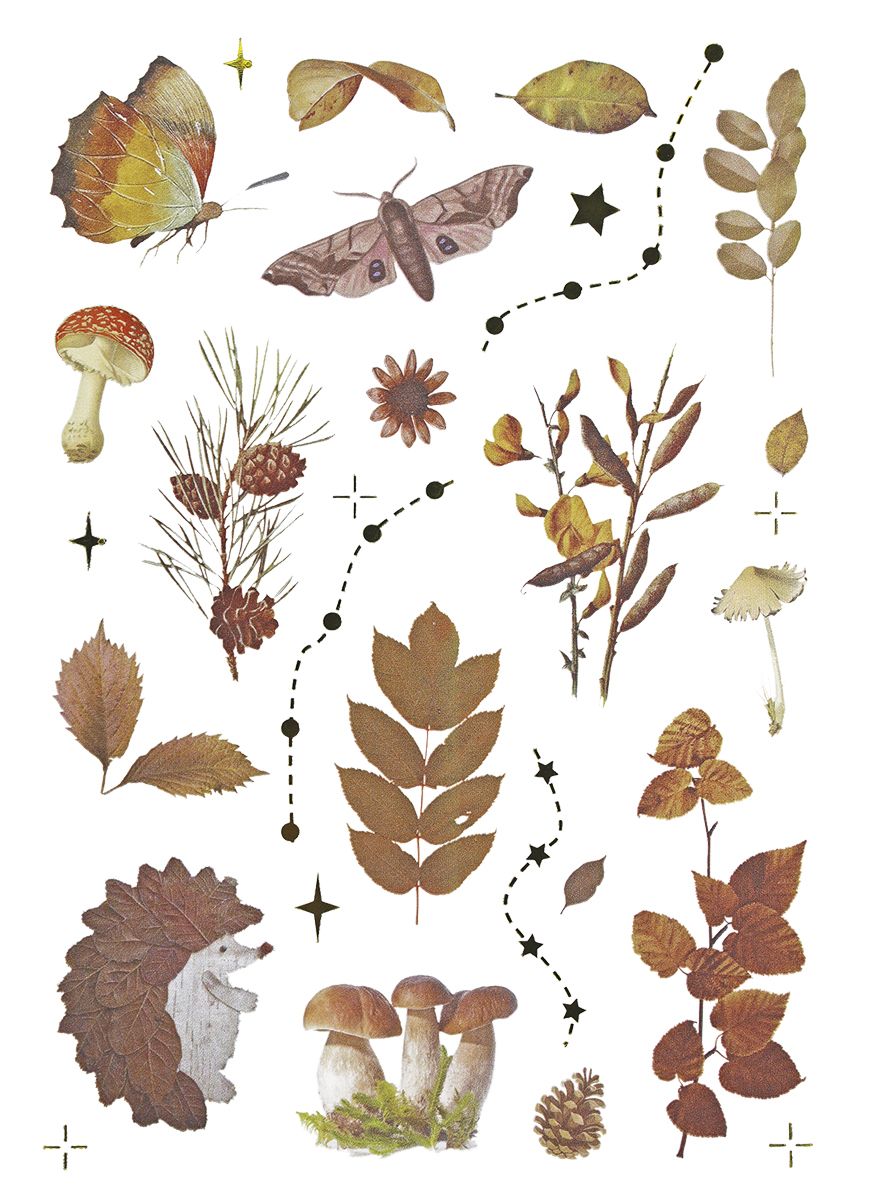 Dostępne: 1181 Sztuk Lub zamów telefoniczne: 690 216 578Naklejki foliowe, 8 plansz, wzory: liście, grzyby, szyszki, kasztany, jeż.