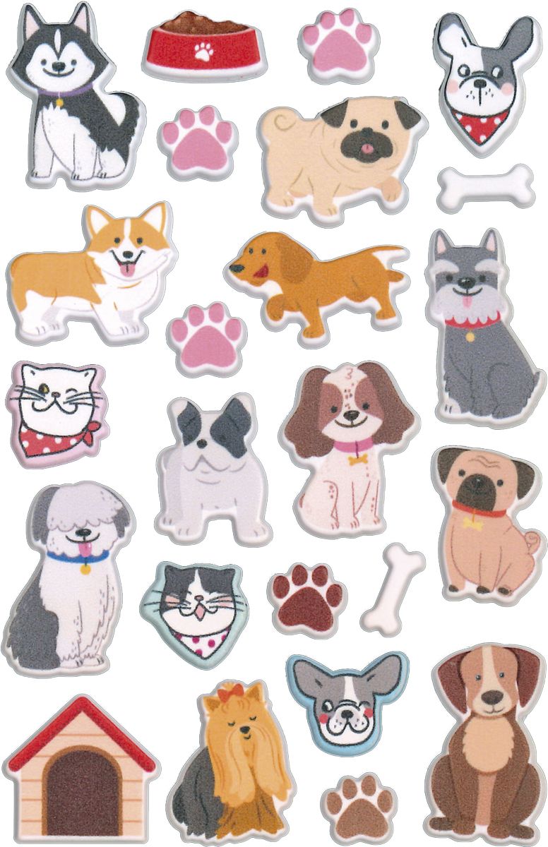 Naklejki wypukłe, wzór: psy. 24 sztuki.