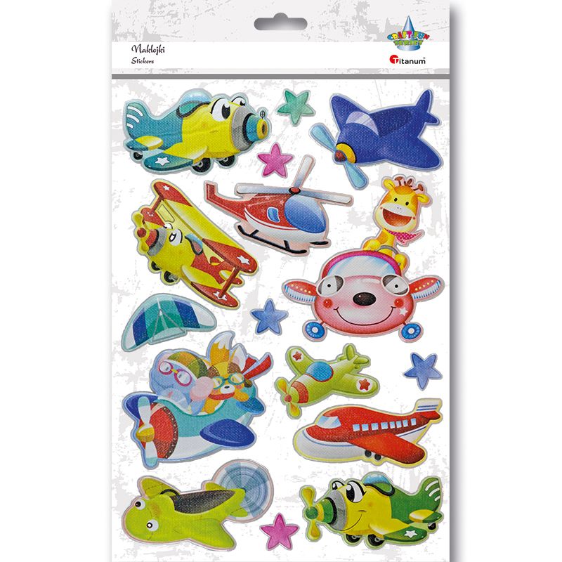 Dzieci uwielbiają naklejki! Naklejki Titanum są idealne do dekorowania pokoju, mebli czy przyborów szkolnych. Kolorowe wzory i bezpieczna powierzchnia sprawią, że Twoje dziecko będzie się świetnie bawiło. Dodatkowo naklejki są odporne na działanie promieni UV i łatwe w utrzymaniu czystości. Zestaw zawiera 16 kolorowych naklejek w kształcie samolotów.
