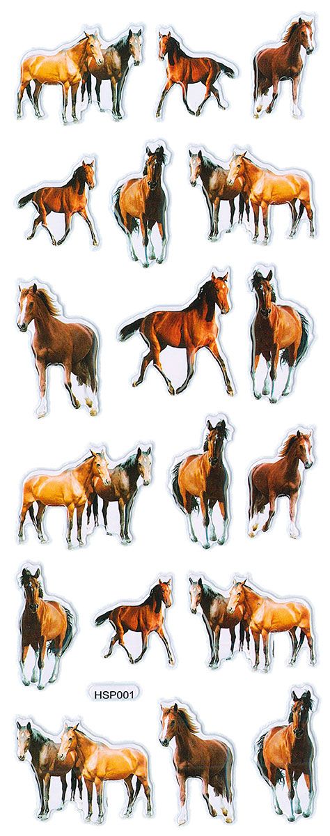 Dostępne: 2880 Sztuk Lub zamów telefoniczne: 690 216 578Naklejki wypukłe miękkie, wzór: konie. 18 sztuk.