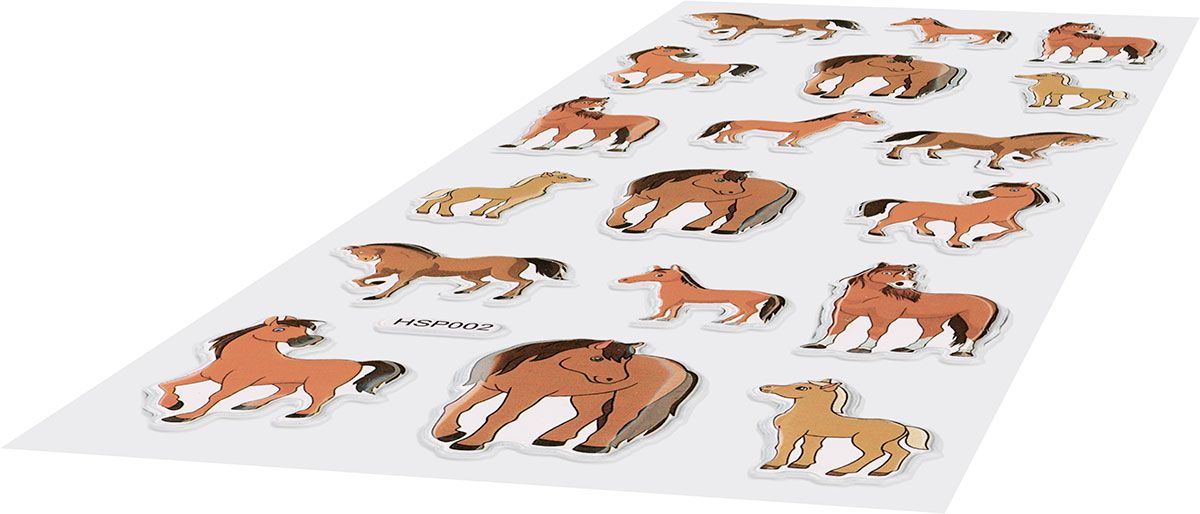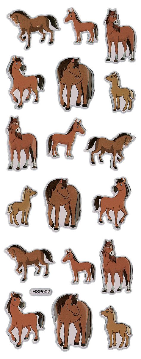 Dostępne: 2772 Sztuk Lub zamów telefoniczne: 690 216 578Naklejki wypukłe miękkie, wzór: konie kreskówkowe. 18 sztuk.
